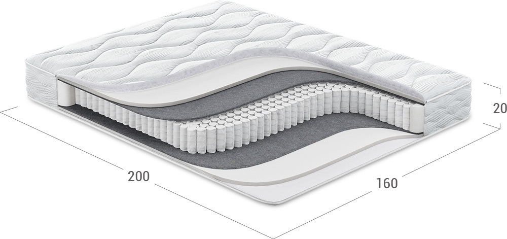 Надежно изолирует комфортные слои от соприкосновения с пружинным блоком и защищает материалы наполнения матраса от износа.
