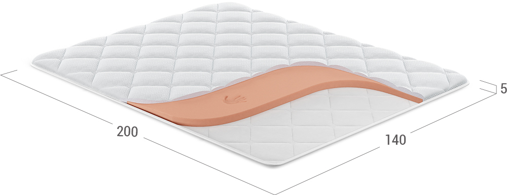 Этот тонкий беспружинный матрас высотой 5 см не только скорректирует несовершенства спального места, но и защитит его поверхность от загрязнений.
