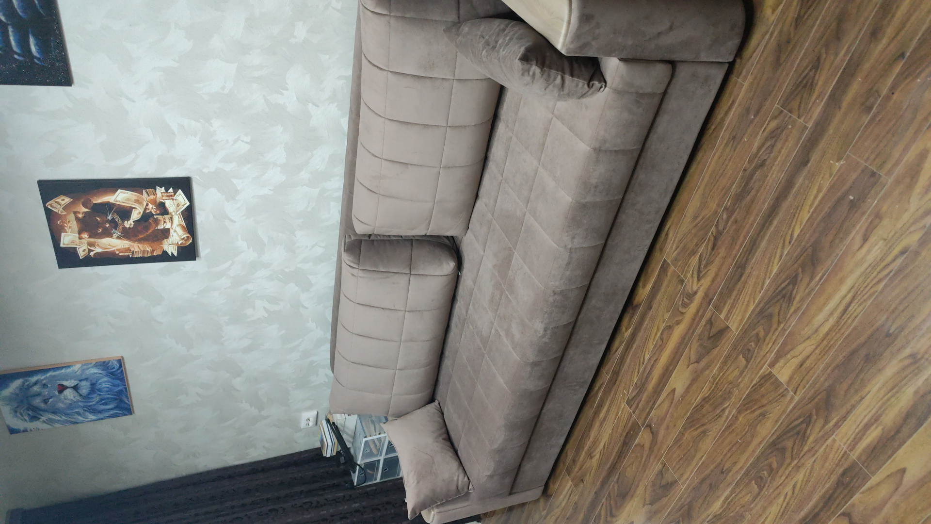 Отличный диван, удобный, вместительный. Понравился цвет ткани и сама ткань, легко удаляется кошачья шерсть. Делали на заказ.
