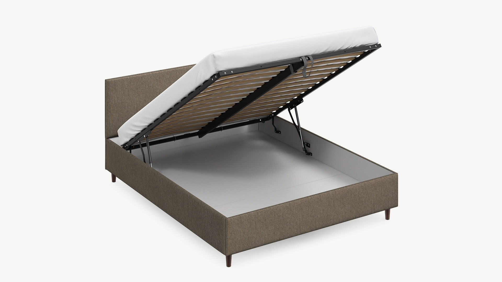 • Регулируемый подъемный механизм имеет два положения установки газовых амортизаторов в зависимости от веса матраса. Это дает возможность оптимально подстраивать угол подъема основания, а также плавно и бесшумно поднимать и опускать спальное место.