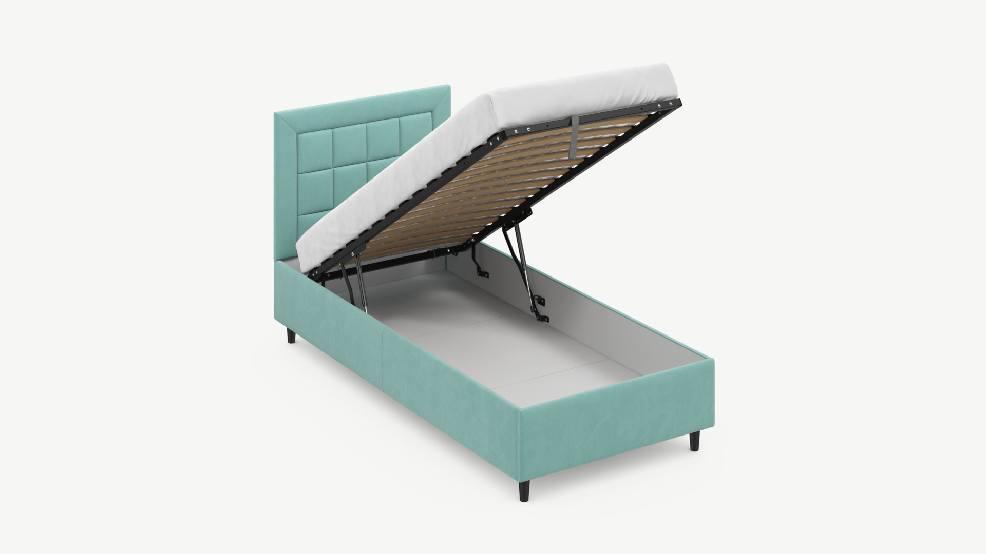 Вместительная емкость под кроватью без внутренних перегородок позволяет использовать для хранения вещей 100% пространства.