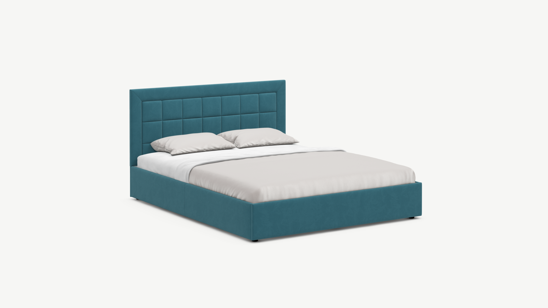 Изголовье декорировано рельефным рисунком стежки в крупный квадрат, получившим особую фактуру за счет глубины шва.