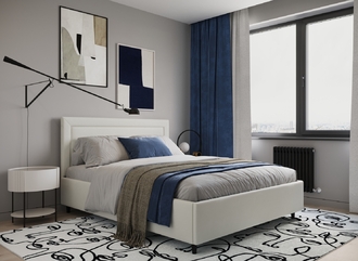 Фактура обивочного материала подбирается дизайнерами с учетом технологических и стилевых особенностей кровати.