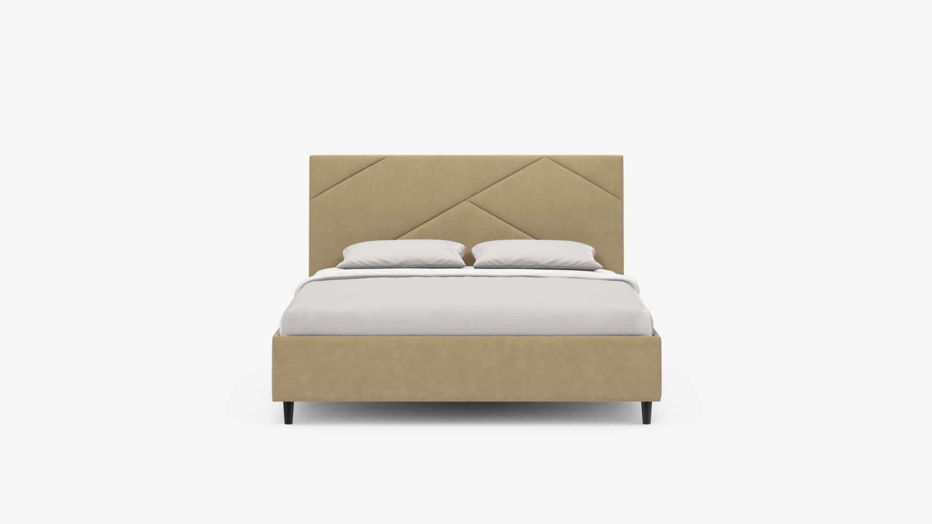 Элегантным и практичным акцентом служат скрытые карманы, расположенные по его углам. Лаконичные формы объемных царг создают единый гармоничный образ и фокусируют внимание на центральном текстурном элементе кровати.
