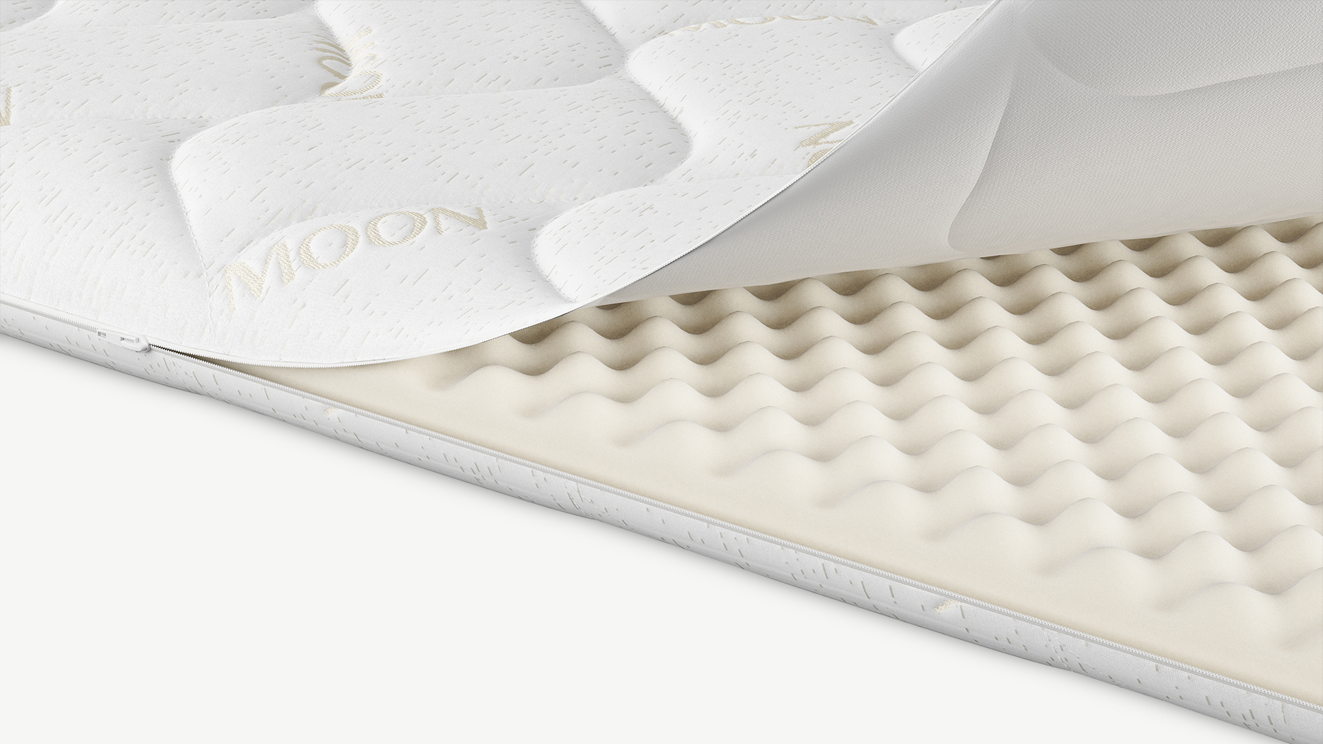 В основе топпера — плотная пена Comfortfoam massage, которая воздействует как множество микропружин, обеспечивая упругую поддержку тела, снимает лишнюю нагрузку с мышц и помогает расслабиться. Ячеистая резка пены оказывает легкий массажный эффект и улучшает кровообращение.