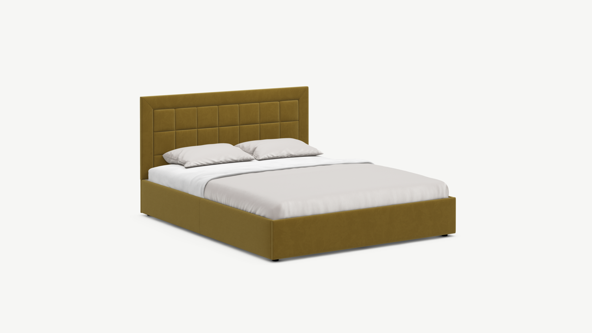 Изголовье декорировано рельефным рисунком стежки в крупный квадрат, получившим особую фактуру за счет глубины шва.