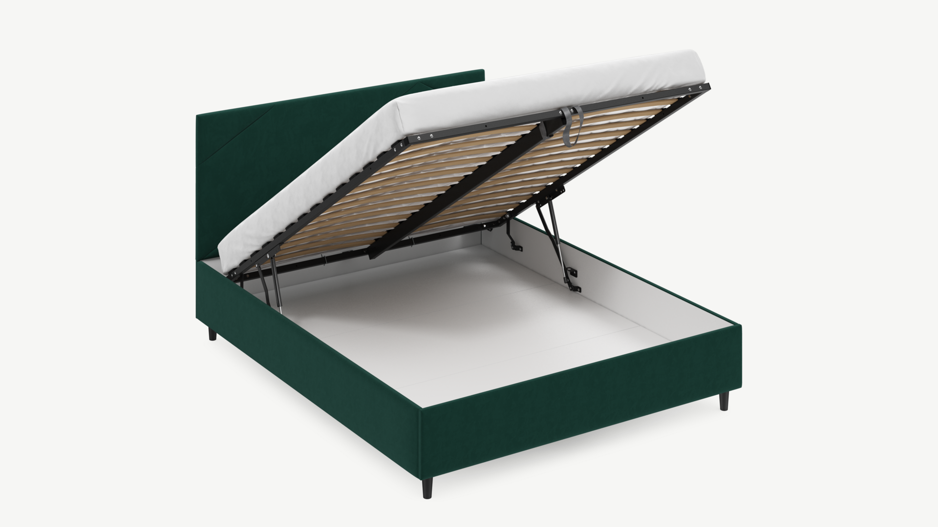• Скрытая под основанием вместительная емкость без внутренних перегородок позволяет использовать всю площадь подкроватного пространства для хранения вещей.