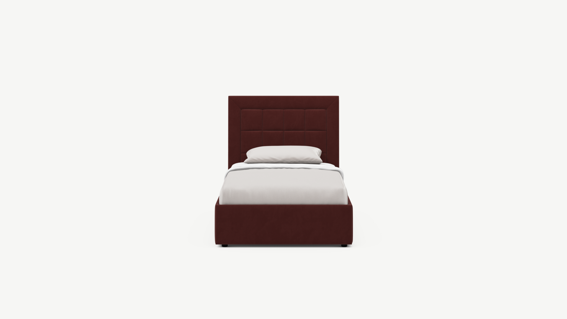 Изголовье декорировано рельефным рисунком стежки в крупный квадрат, получившим особую фактуру за счет глубины шва.