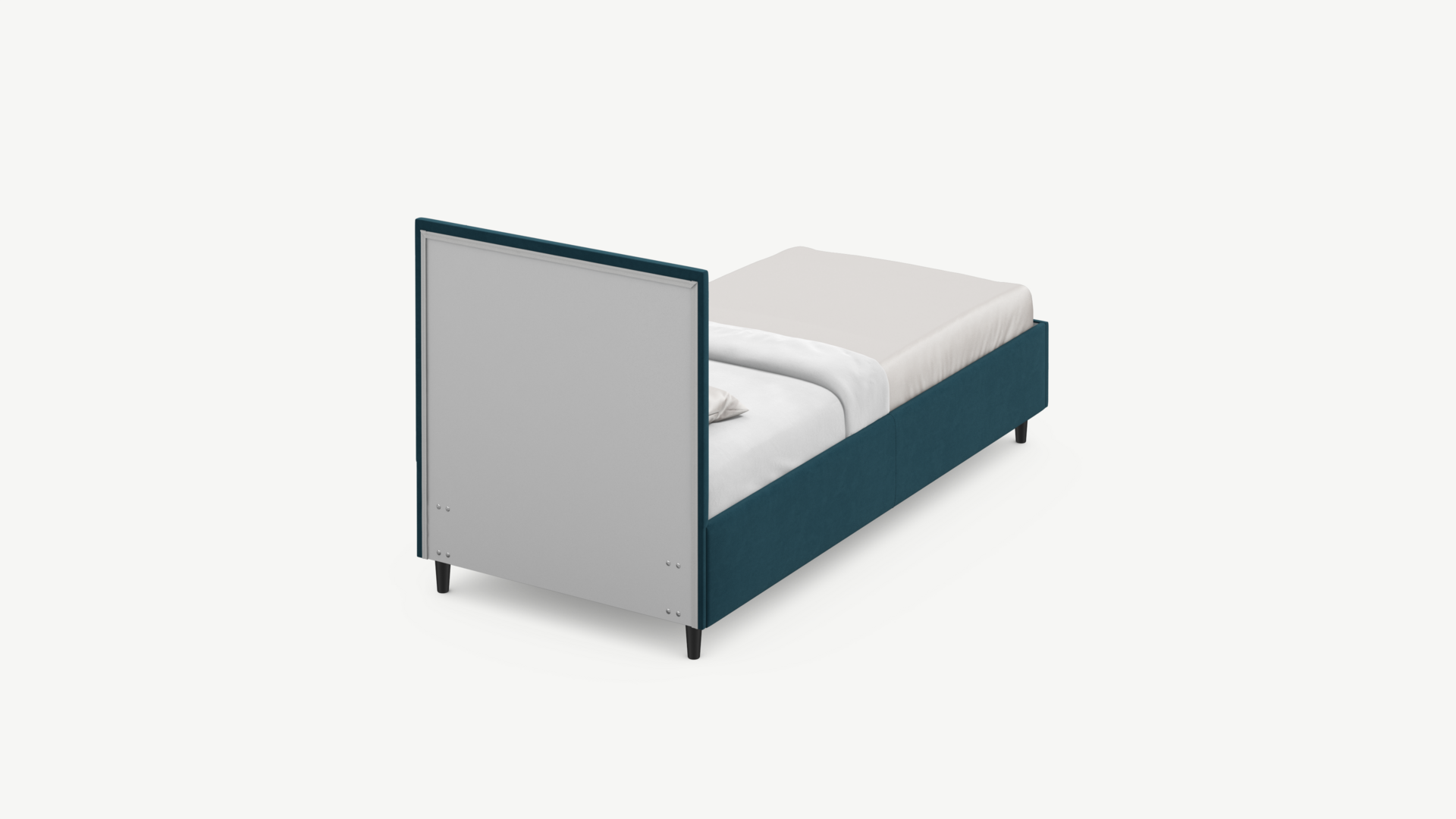 Стежка помещена в центр изголовья и обрамлена, словно картина. Объемные царги становятся гармоничным дополнением образа и завершают цельную фигуру кровати.