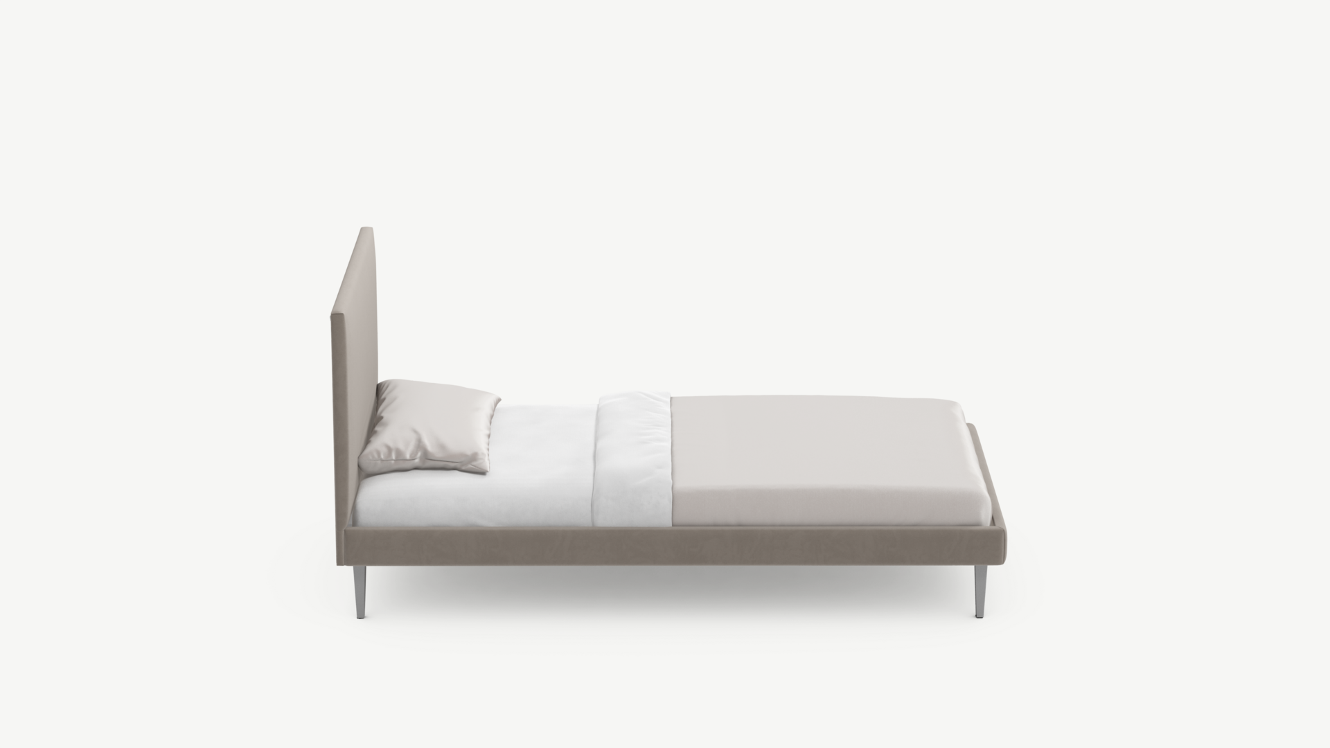 Кровать MOON FAMILY 1256 демонстрирует безупречный баланс изящных пропорций. Лаконичное изголовье, узкие царги и высокие опоры создают эффектный образ, привносящий в пространство спальни стильный и яркий акцент.