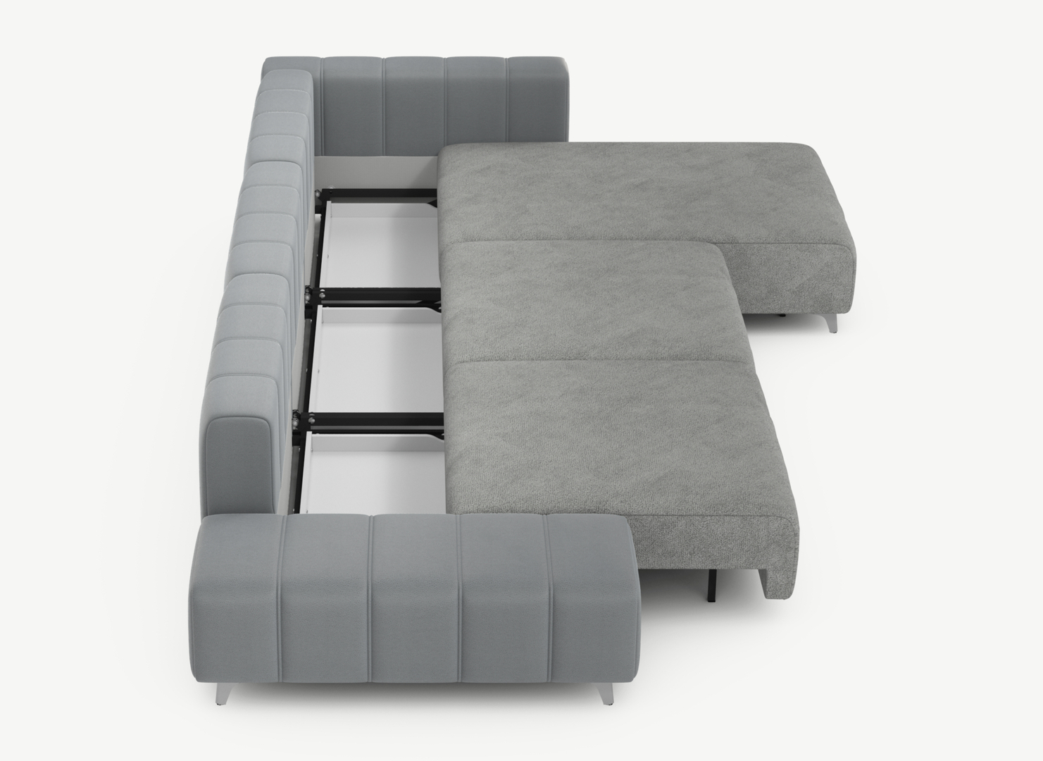 Механизм трансформации «Пантограф» подходит для ежедневного использования. Позволяет легко раскладывать и складывать диван, обеспечивая минимальный контакт дополнительных опор с напольным покрытием.