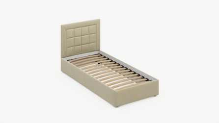 Рама, изголовье и царги надежно крепятся между собой, обеспечивая прочность и устойчивость кровати.