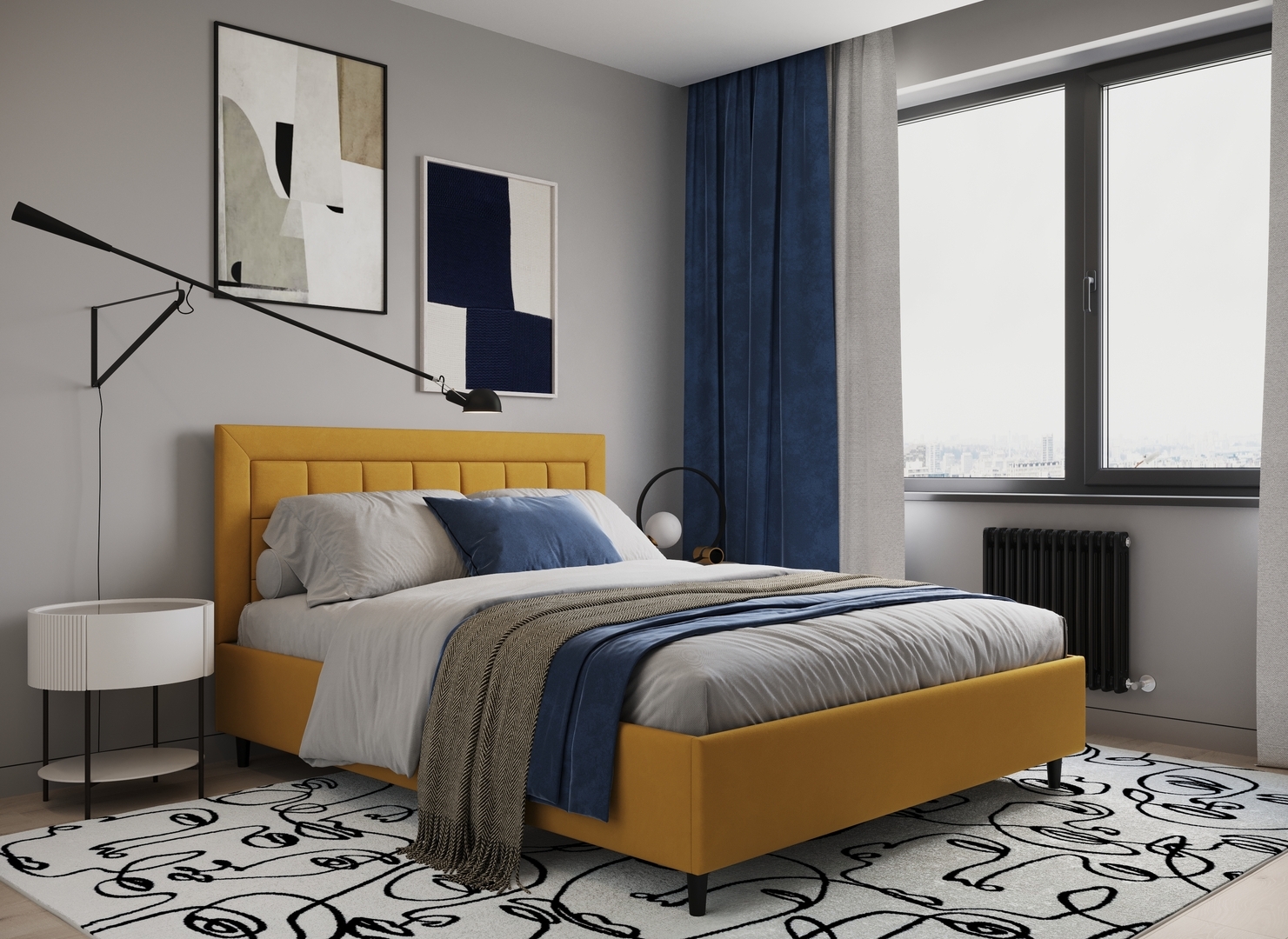 Стежка помещена в центр изголовья и обрамлена, словно картина. Объемные царги становятся гармоничным дополнением образа и завершают цельную фигуру кровати.