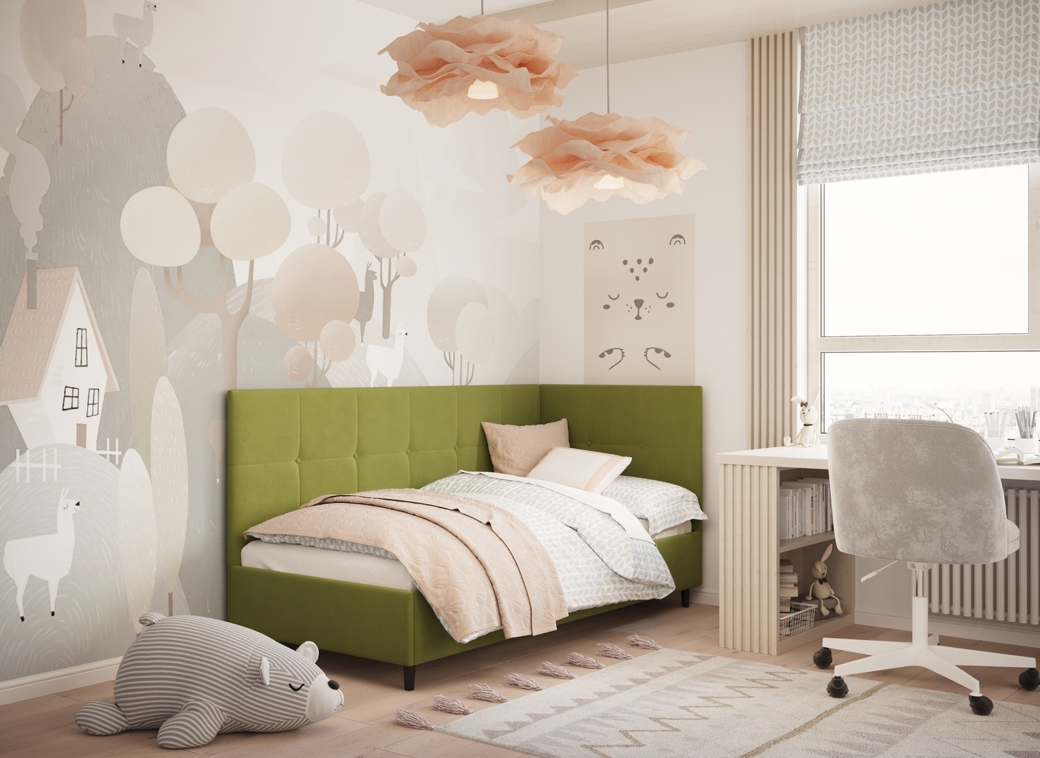 В подростковой комнате эта кровать станет стильным акцентом окружающего интерьера и возьмет на себя роль удобной кушетки для друзей, зашедших в гости.