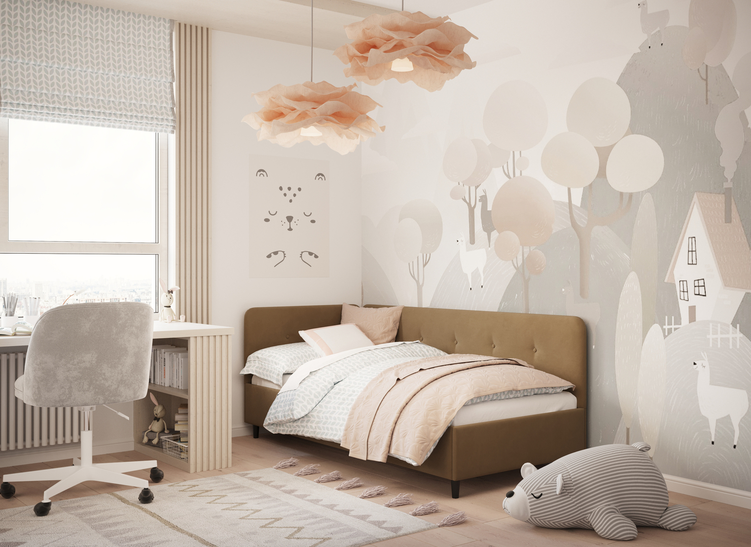 В подростковой комнате эта кровать станет стильным акцентом окружающего интерьера и возьмет на себя роль удобной кушетки для друзей, зашедших в гости.