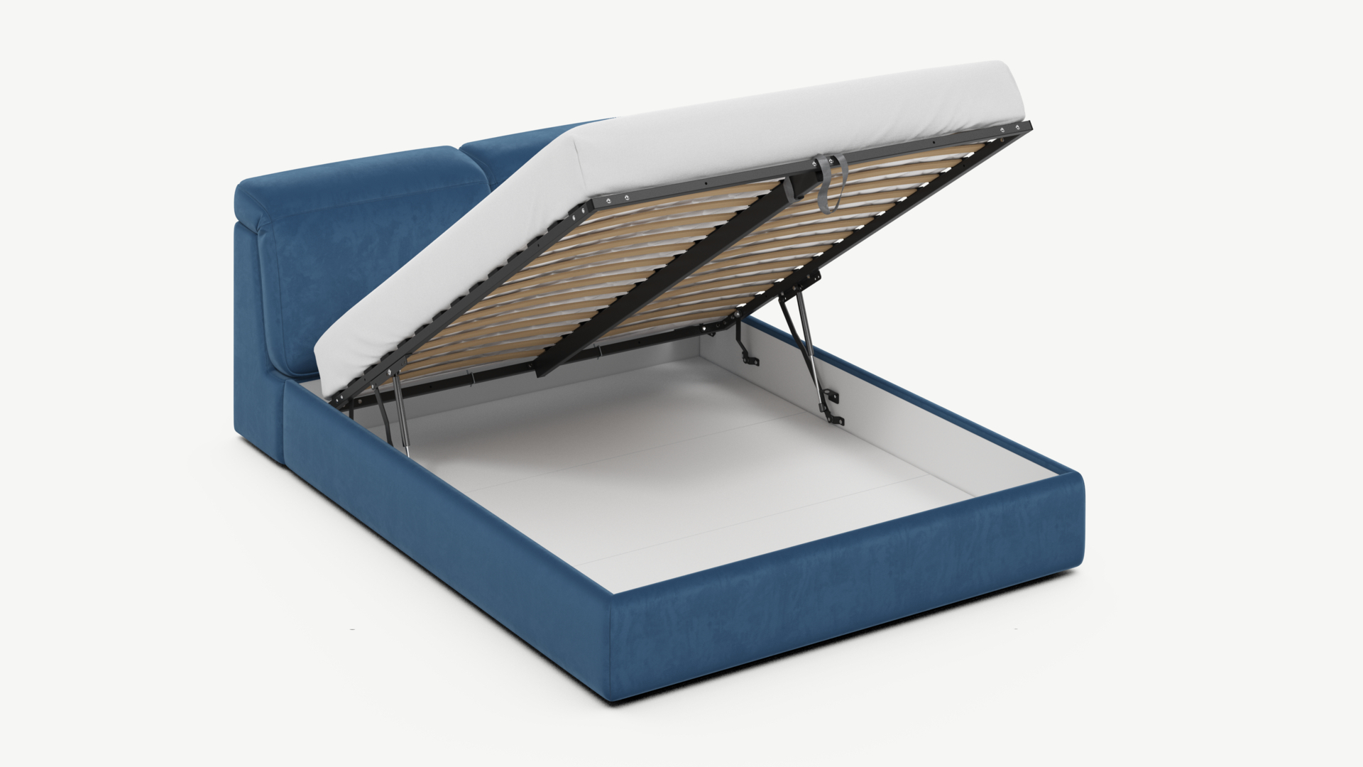 • Скрытая под основанием вместительная емкость без внутренних перегородок позволяет использовать всю площадь подкроватного пространства для хранения вещей.